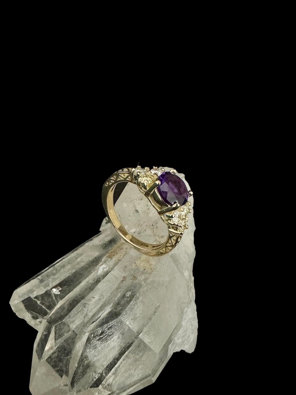R$ 3.500,00Anel Ouro Amarelo Ametista e Esmeralda