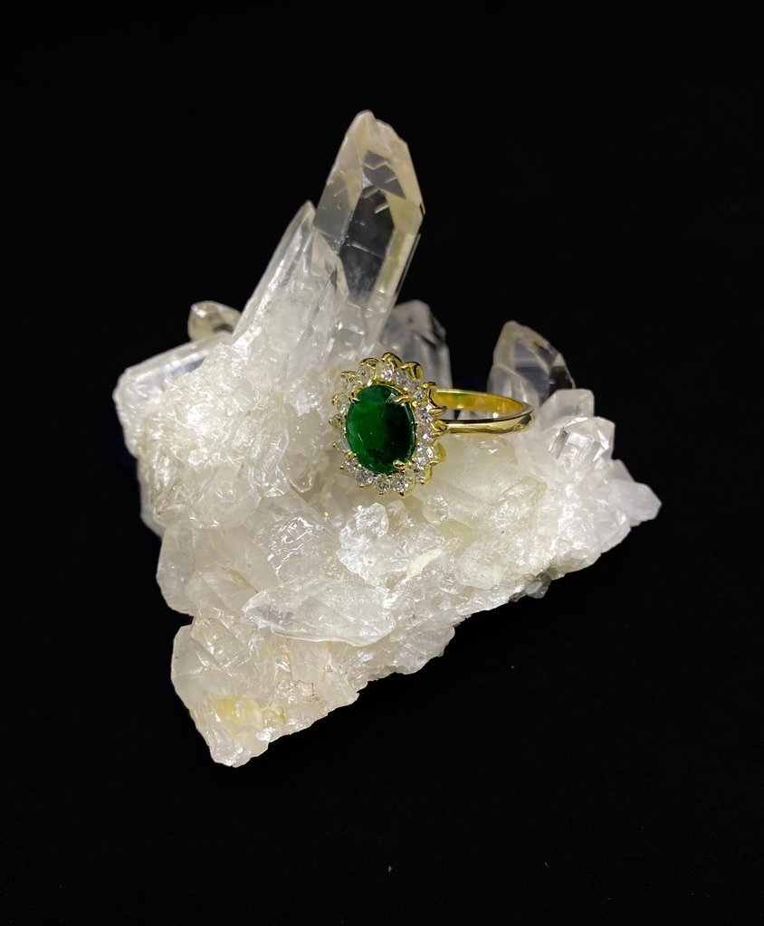 Anel Ouro Amarelo, Esmeralda e Diamantes