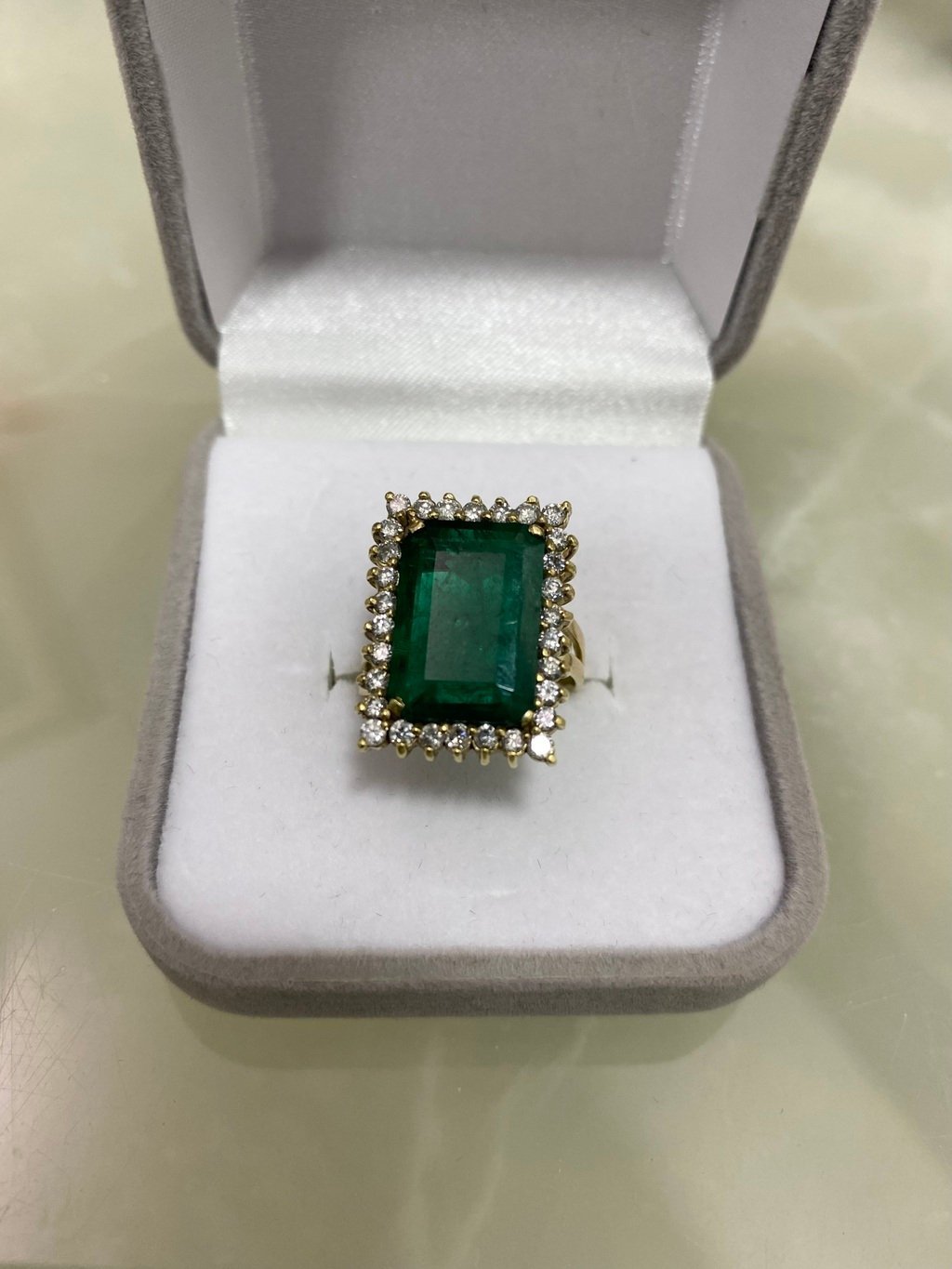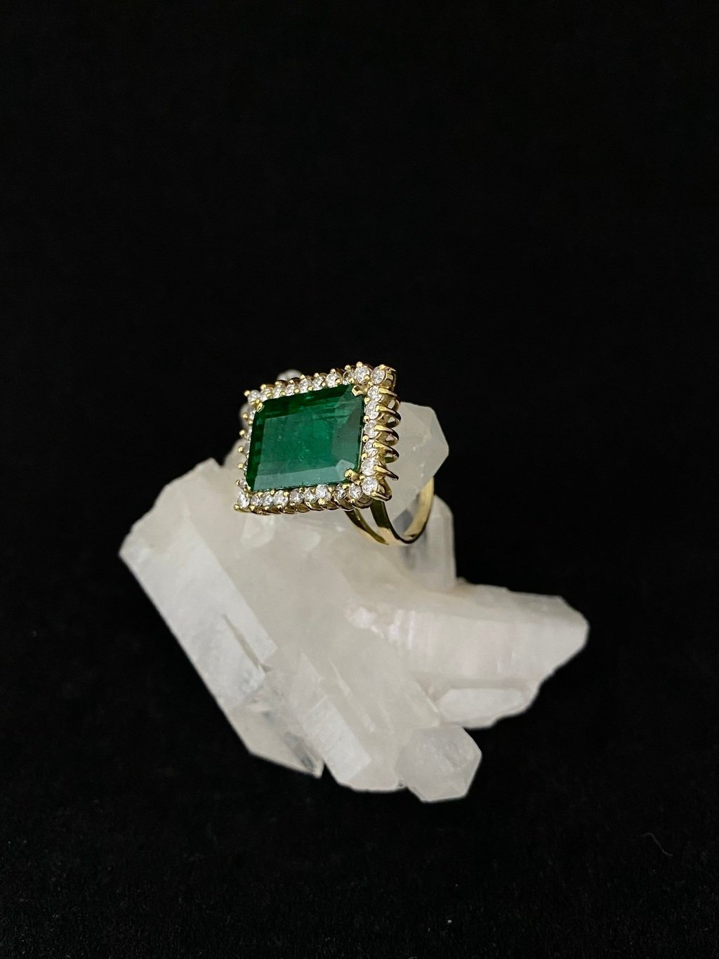 R$ 7.000,00Anel Ouro Amarelo, Esmeralda e Diamantes