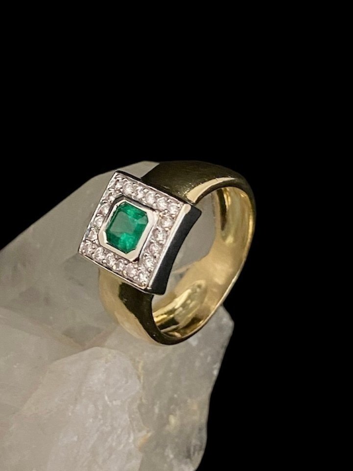 R$ 7.000,00Anel Ouro Amarelo, Esmeralda e Diamantes