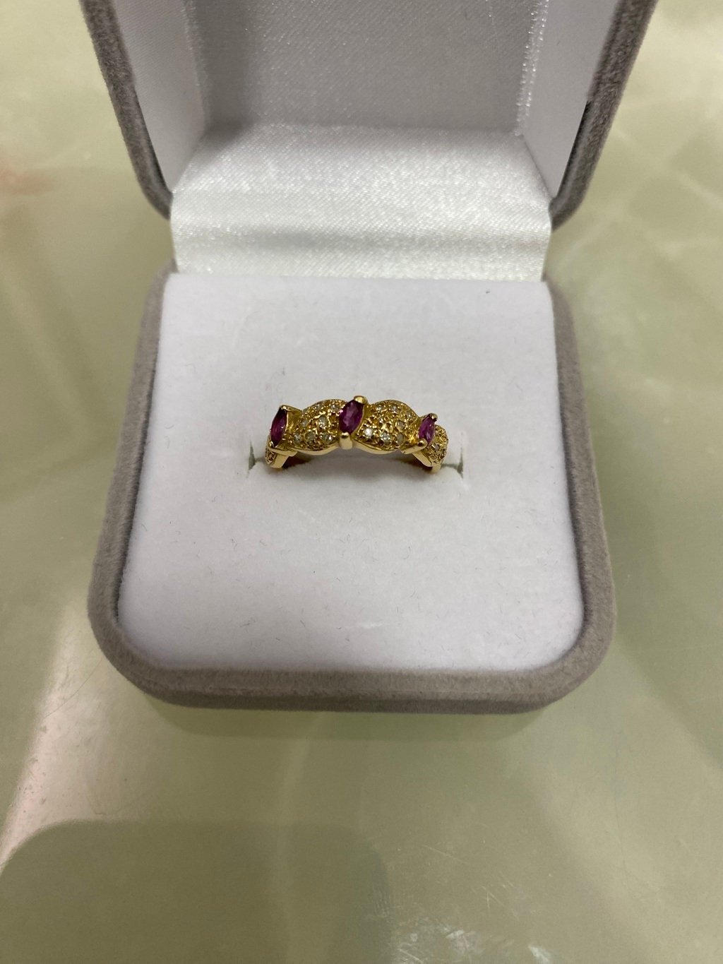 R$ 3.500,00Anel Ouro Amarelo Ametista e Esmeralda