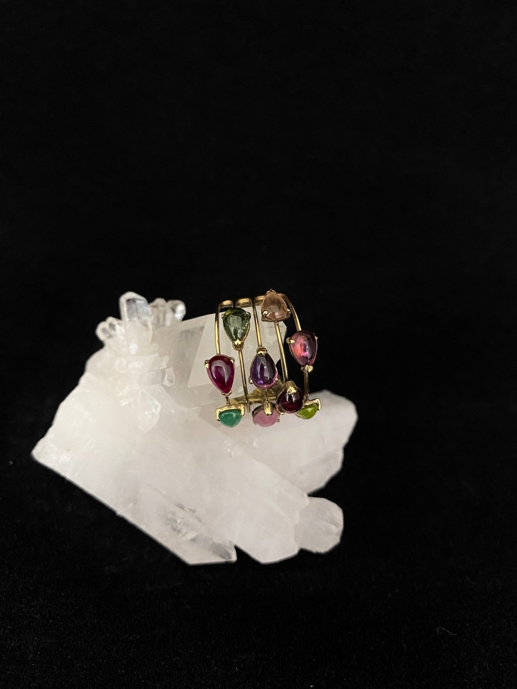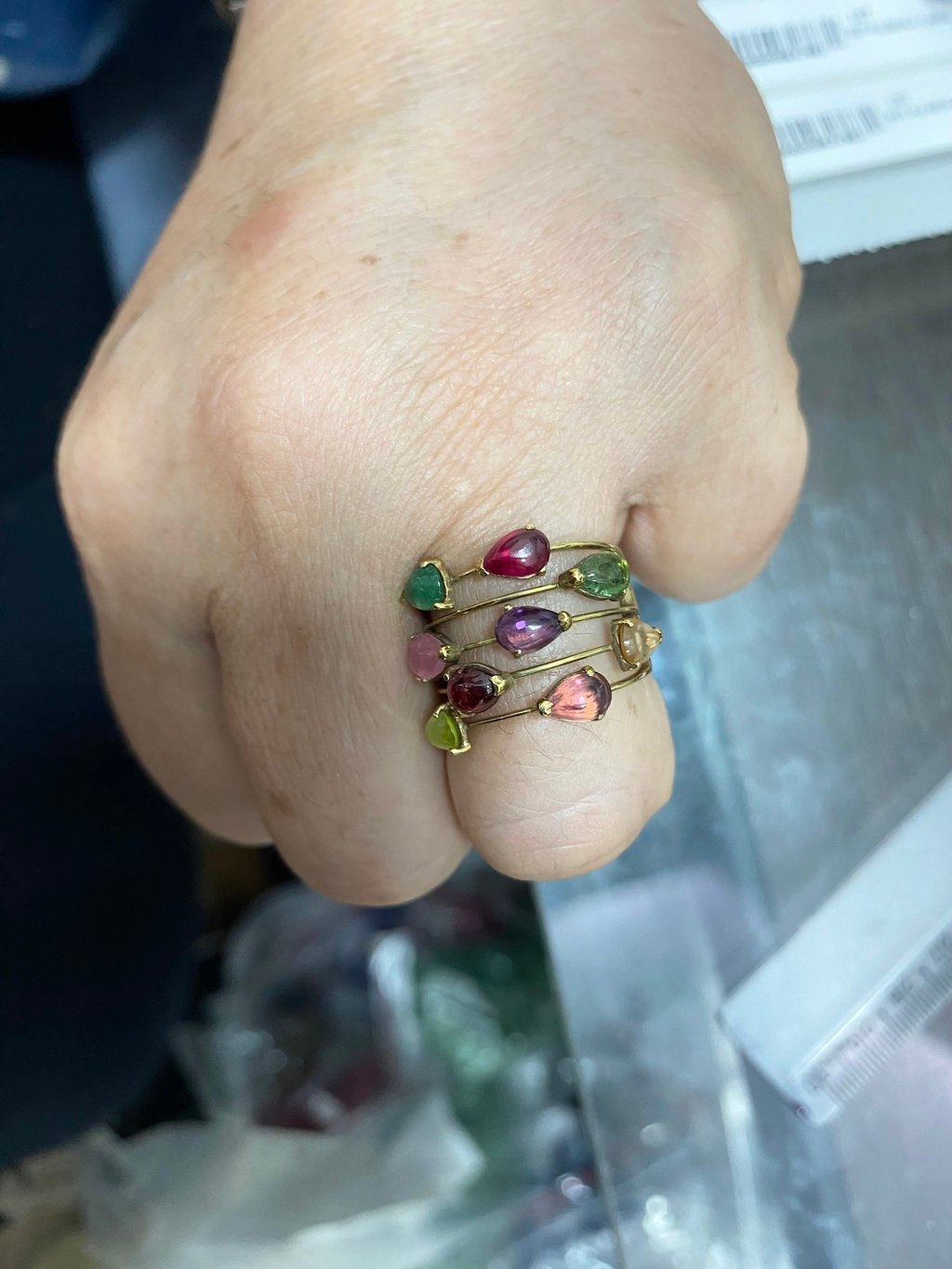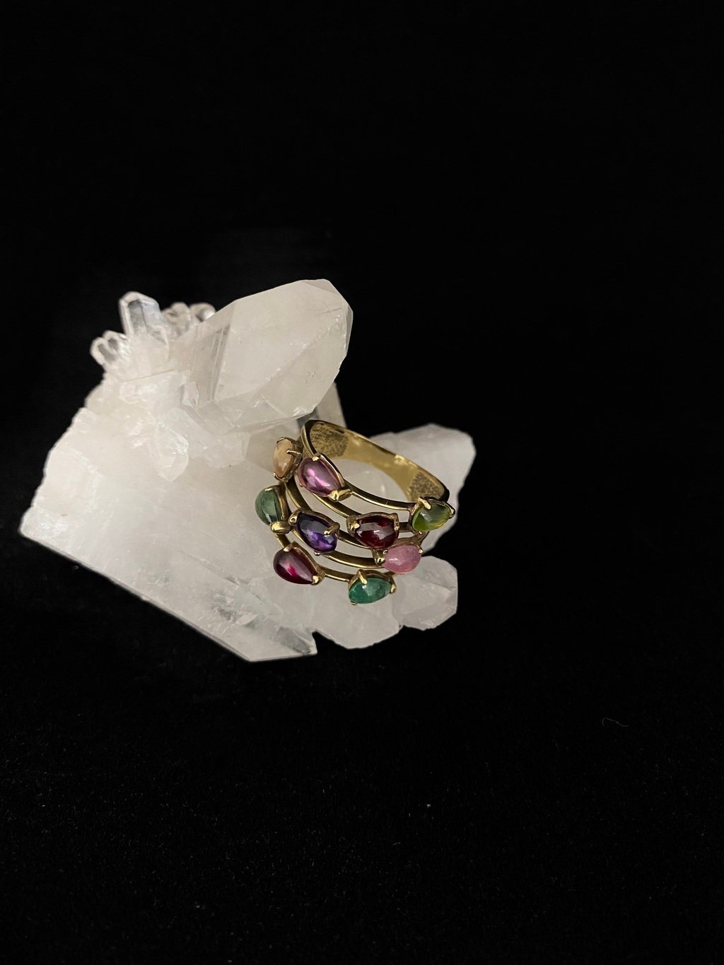 Anel Faixa de Turmalinas Rosa e Diamantes