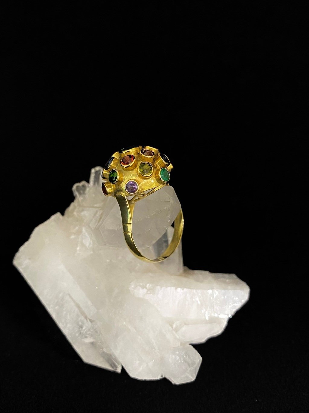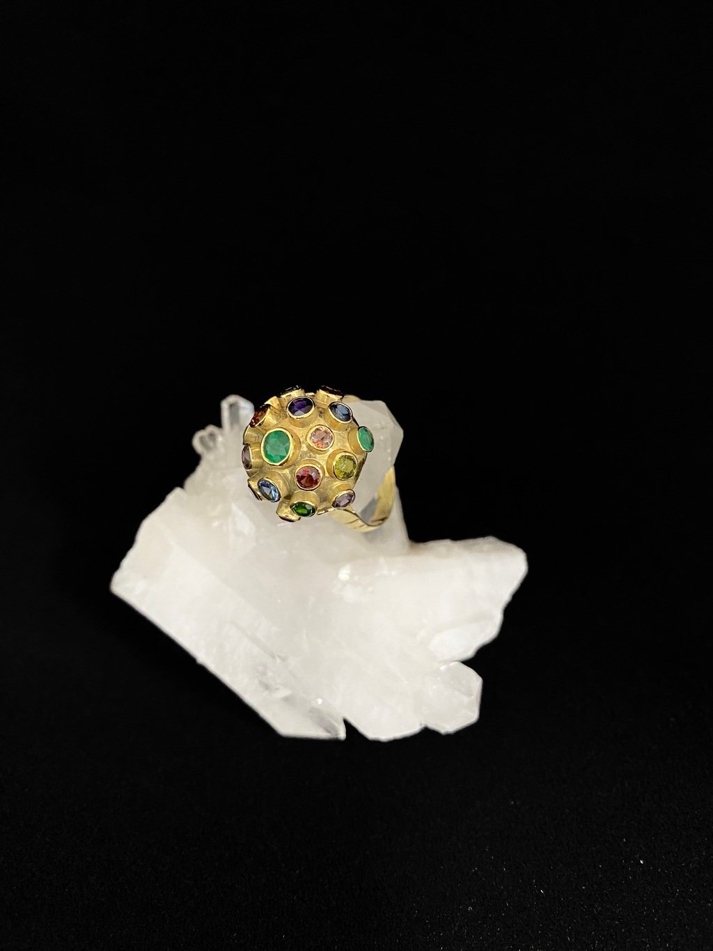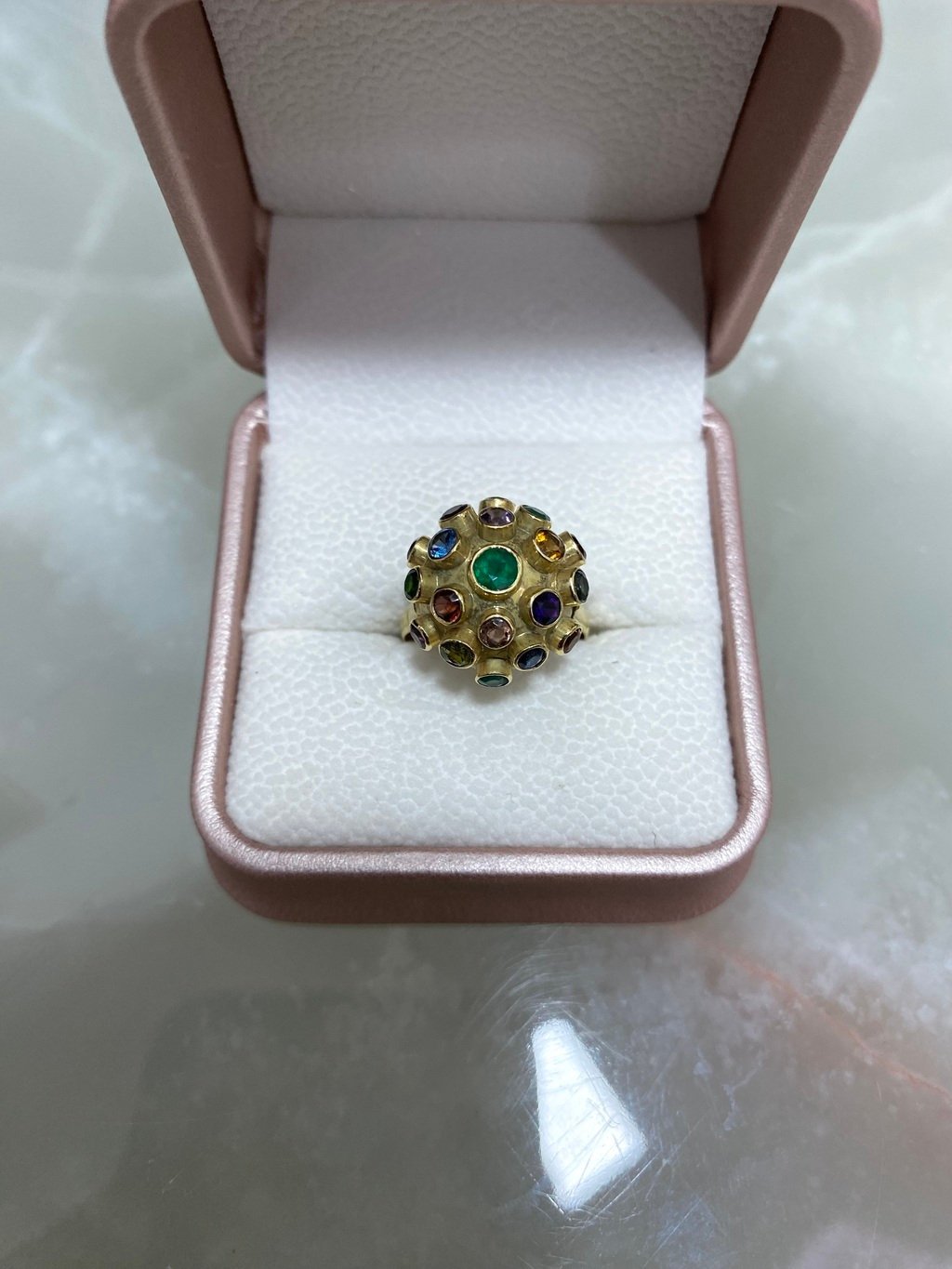 R$ 7.000,00Anel Ouro Amarelo, Esmeralda e Diamantes