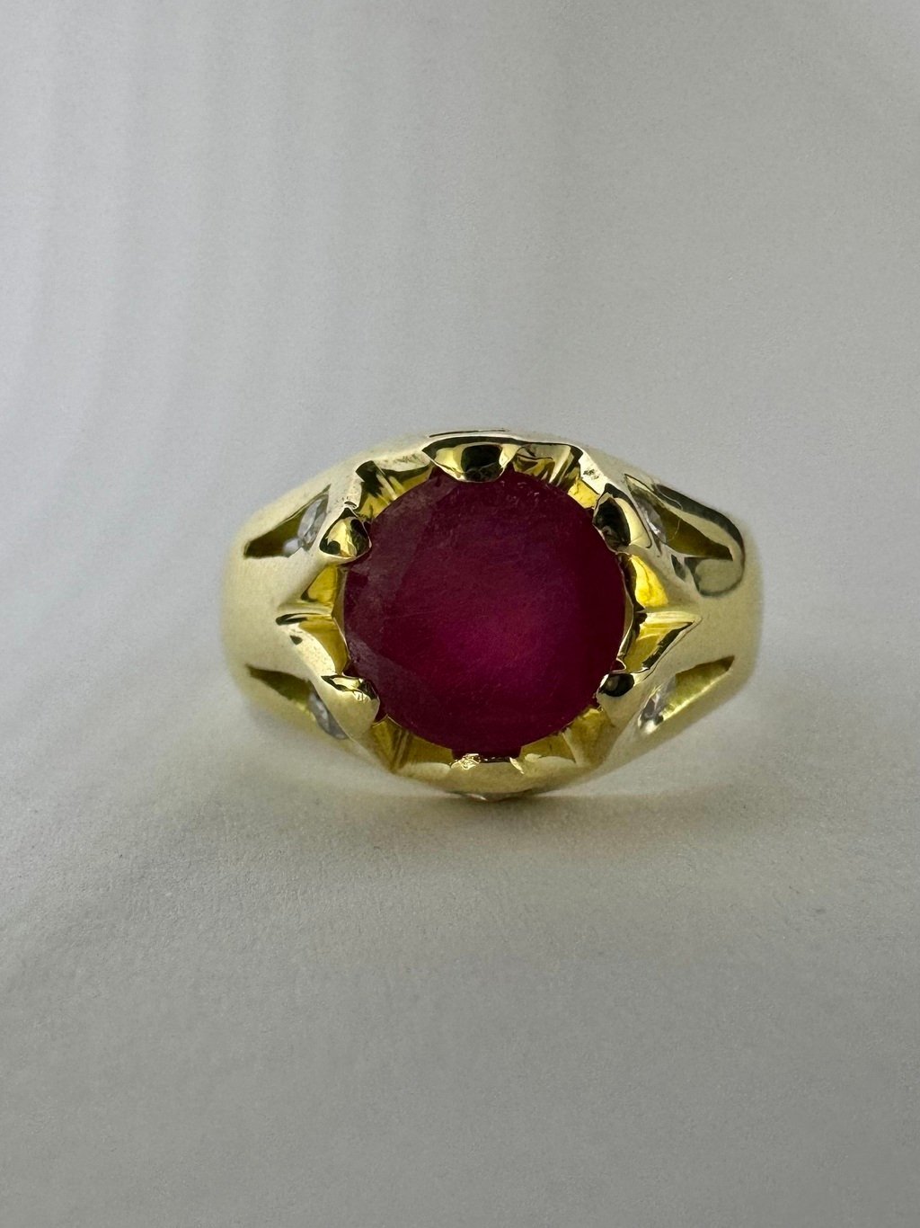 R$ 3.500,00Anel Ouro Amarelo Ametista e Esmeralda