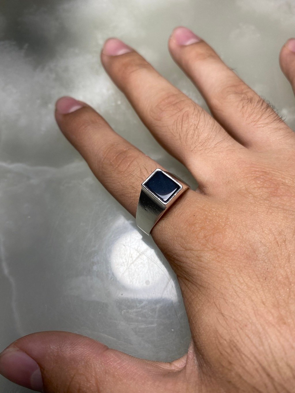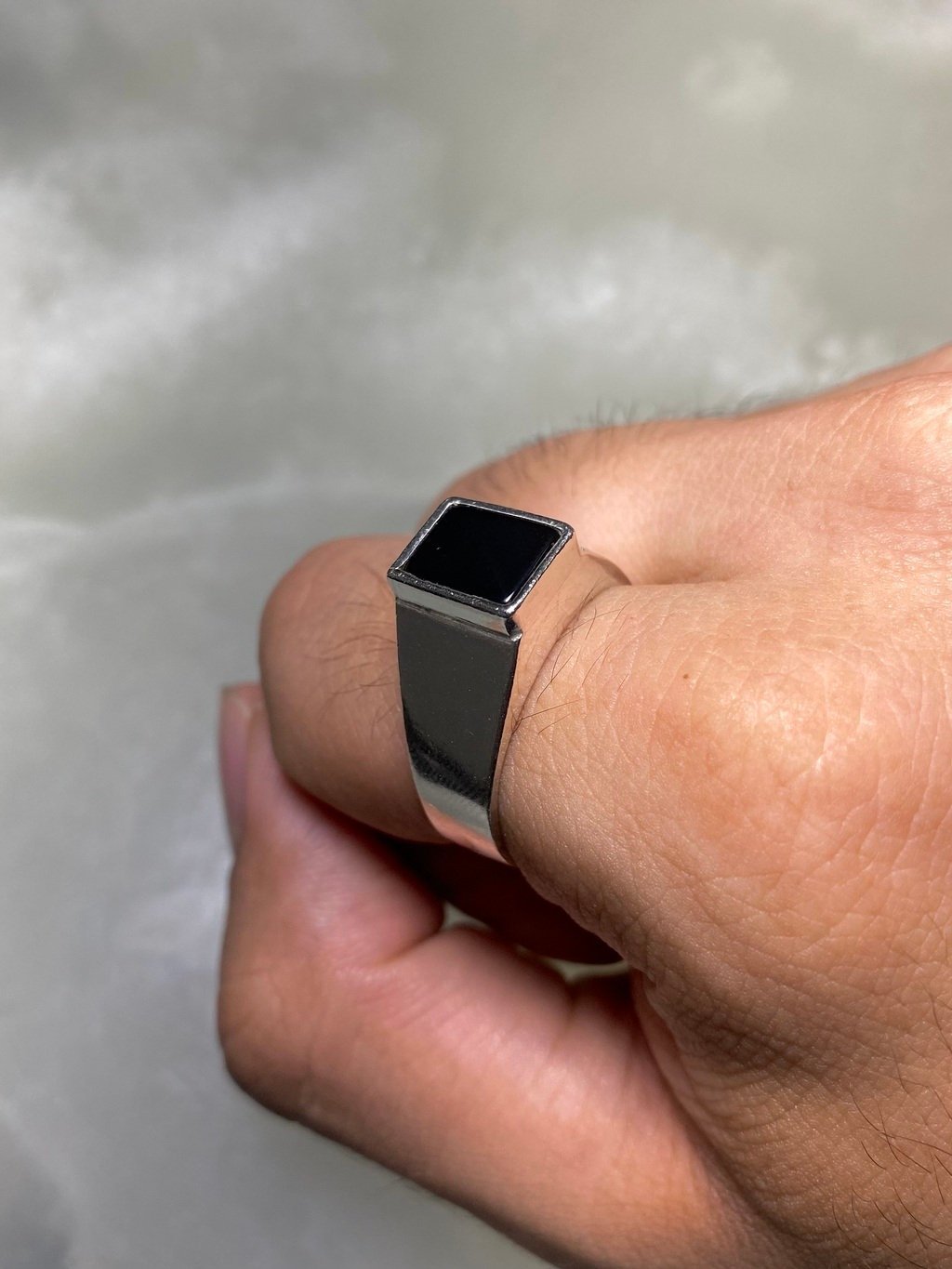 •Anel Prata e Onix Modelo Social -Material: Prata 925 e Onix Natural; -Dimensões aproximadas: 3cmx3xmx2cm -Numeração: Fabricamos em qualquer númeração, especificar no ato da compra. -Gramatura aproximada: 7g •Pagamento: -Aceitamos pagamento parcelado até em 10x sem juros, em todos os cratões de débito e pix. •Fábrica:  -A M.Adriane tem fabricação em Goiânia-Goiás e duas joalherias, uma junto á fábrica na rua 250, número 58 setor Coimbra e uma no Araguaia Shopping. Fábricamos qualquer peça em Prata ou Ouro sob encomenda pelo instagram ou whatzapp +55 (62)98147-4759 •Garantia: -Todas as peças M.Adriane em Prata 925 e Ouro 18 possuem garantia vitlícia. Nosso contato para orçamentos no atacado ou dúvidas é o whatzapp +55(62)98147-4759