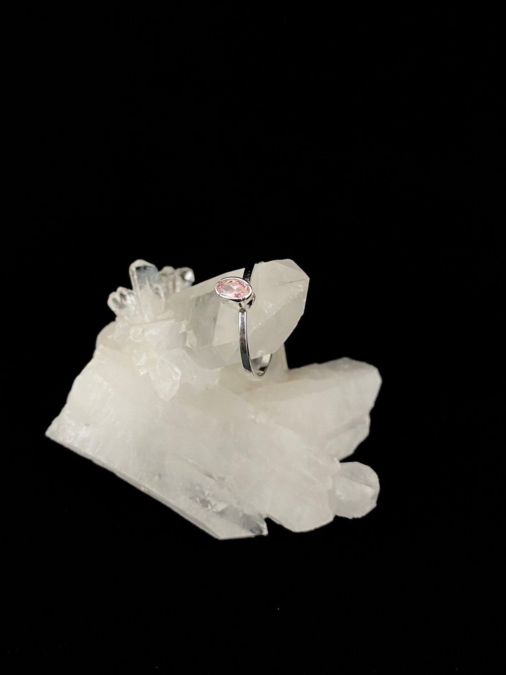 Anel Prata e Turmalina Rosa Oval Falange