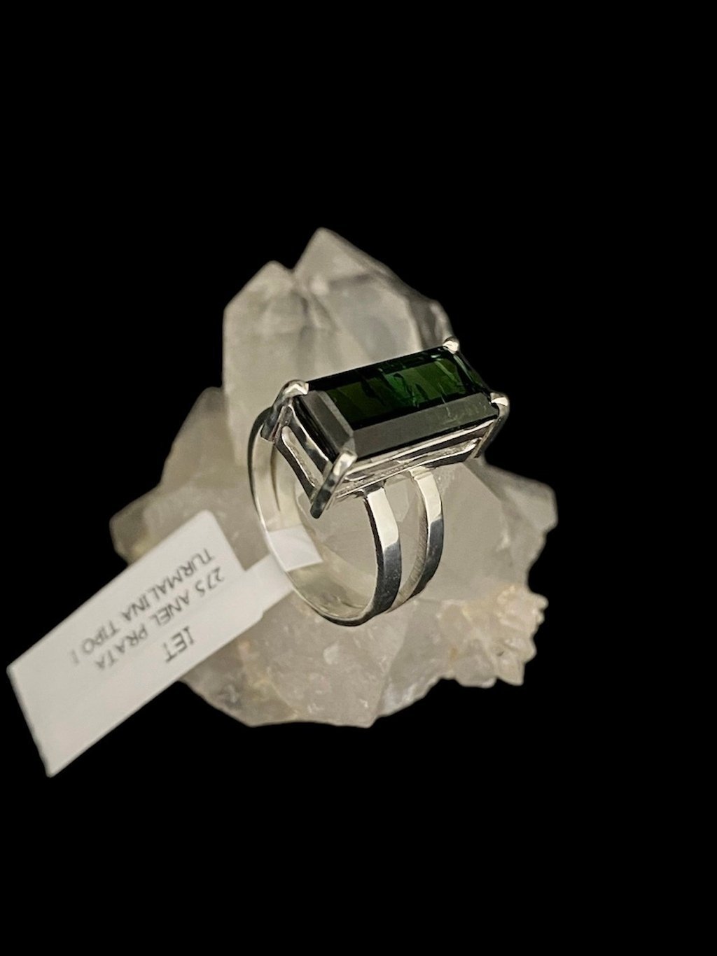 •Anel Prata e Turmalina Verde -Material: Prata 925 e Turmalina verde Natural -Dimensões aproximadas: 3cmx3xmx2.5cm -Numeração: Fabricamos em qualquer númeração, especificar no ato da compra. -Gramatura aproximada: 5.2g •Pagamento: -Aceitamos pagamento parcelado até em 10x sem juros, em todos os cratões de débito e pix. •Fábrica: -A M.Adriane tem fabricação em Goiânia-Goiás e duas joalherias, uma junto á fábrica na rua 250, número 58 setor Coimbra e uma no Araguaia Shopping. Fábricamos qualquer peça em Prata ou Ouro sob encomenda pelo instagram ou whatzapp +55 (62)98147-4759 •Garantia: -Todas as peças M.Adriane em Prata 925 e Ouro 18 possuem garantia vitlícia. Nosso contato para orçamentos no atacado ou dúvidas é o whatzapp +55(62)98147-4759
