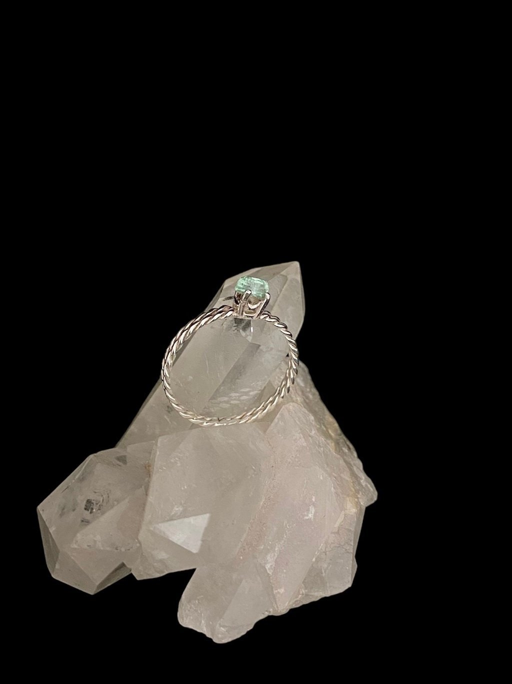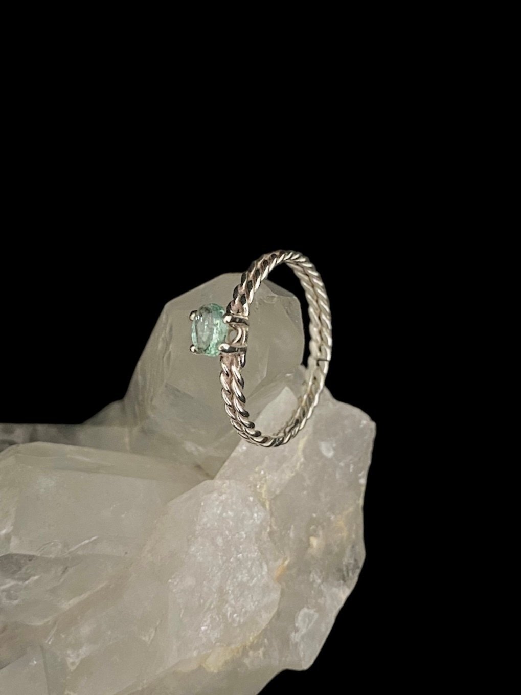 Anel Prata e Turmalina Verde Modelo Viking falange