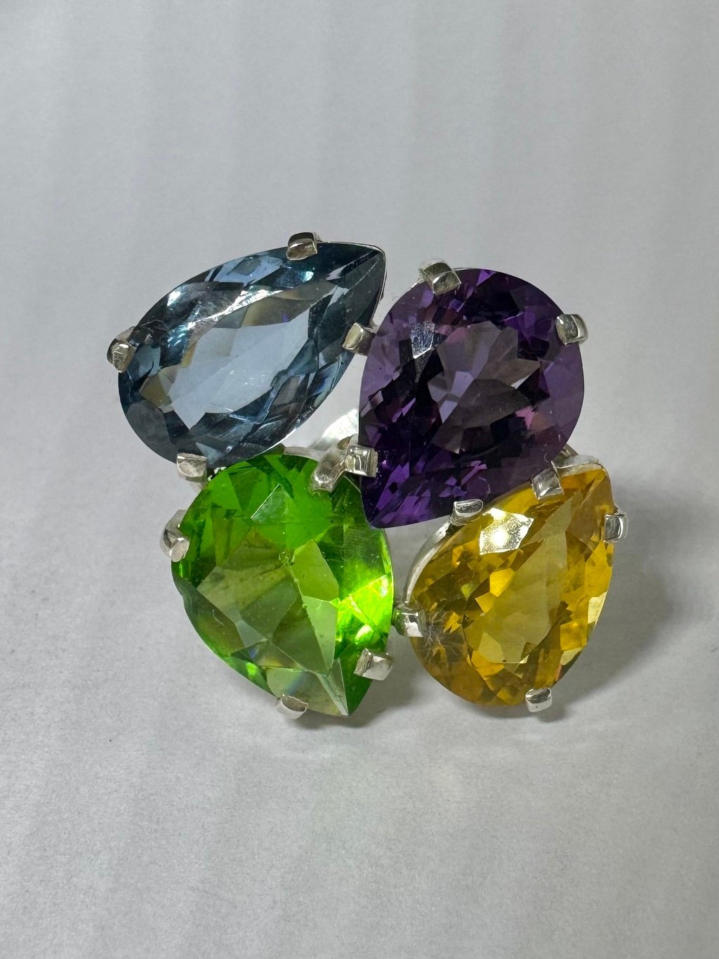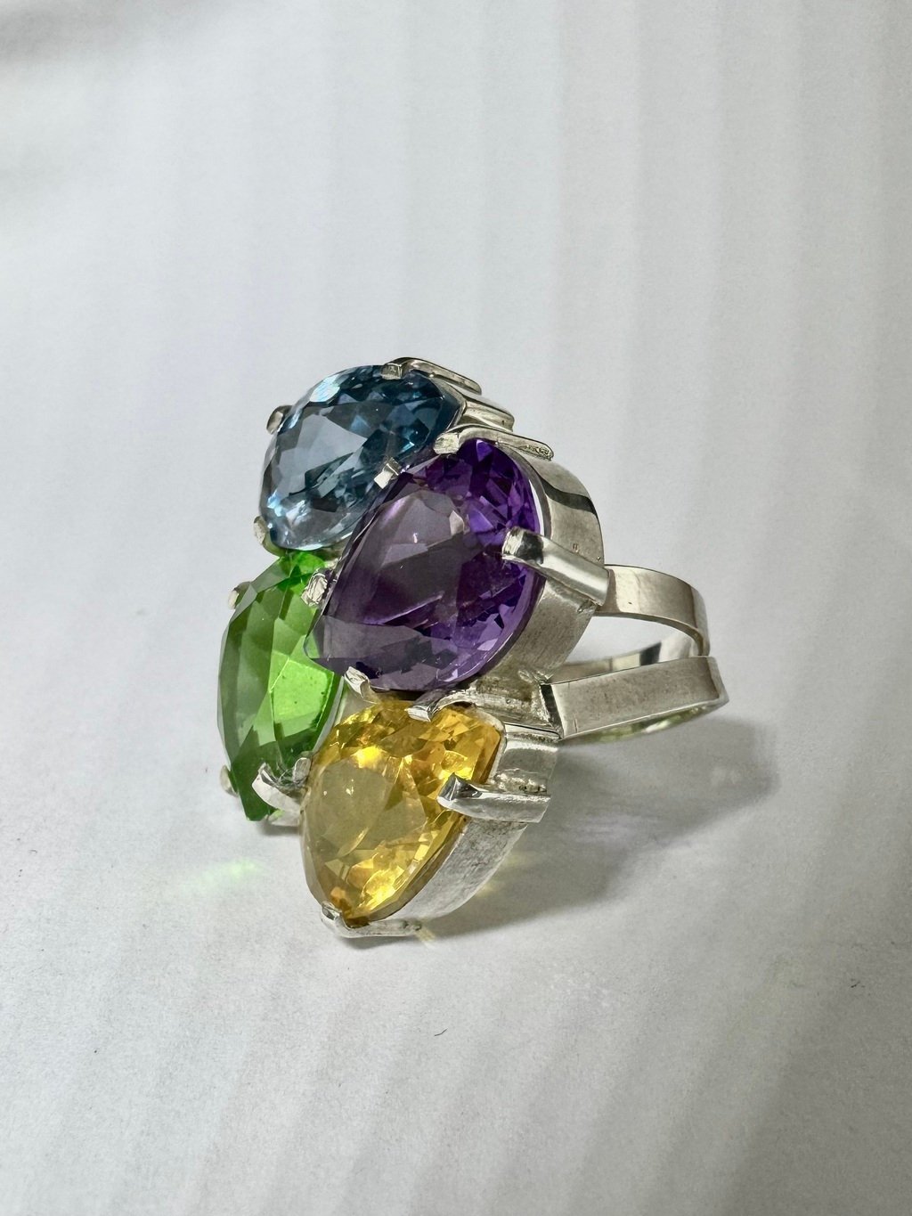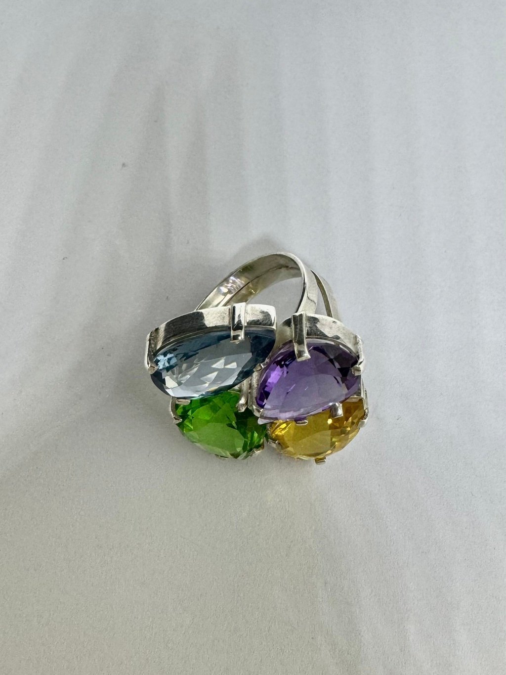 R$ 3.500,00Anel Ouro Amarelo Ametista e Esmeralda