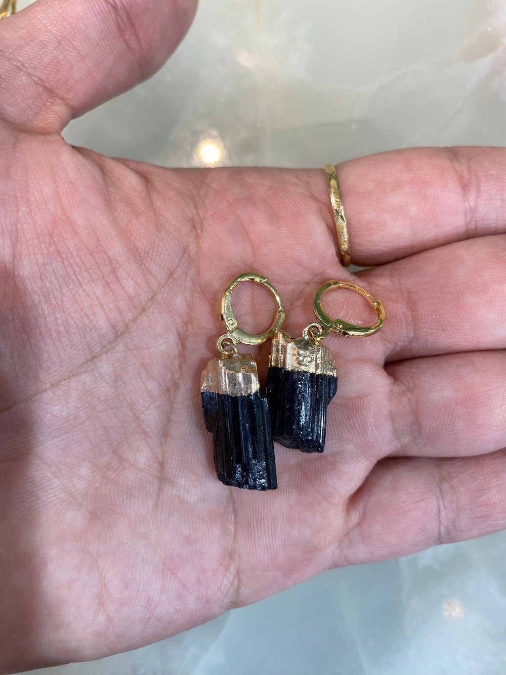 Brincos Semi-Jóia e Turmalina Negra