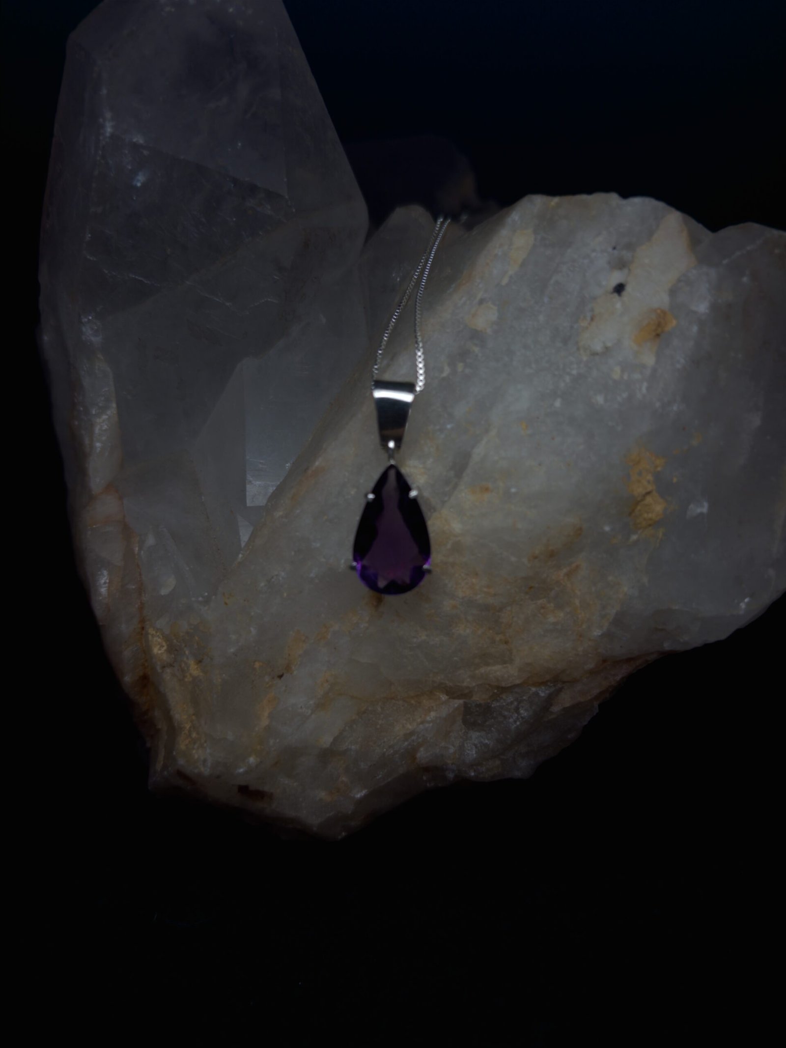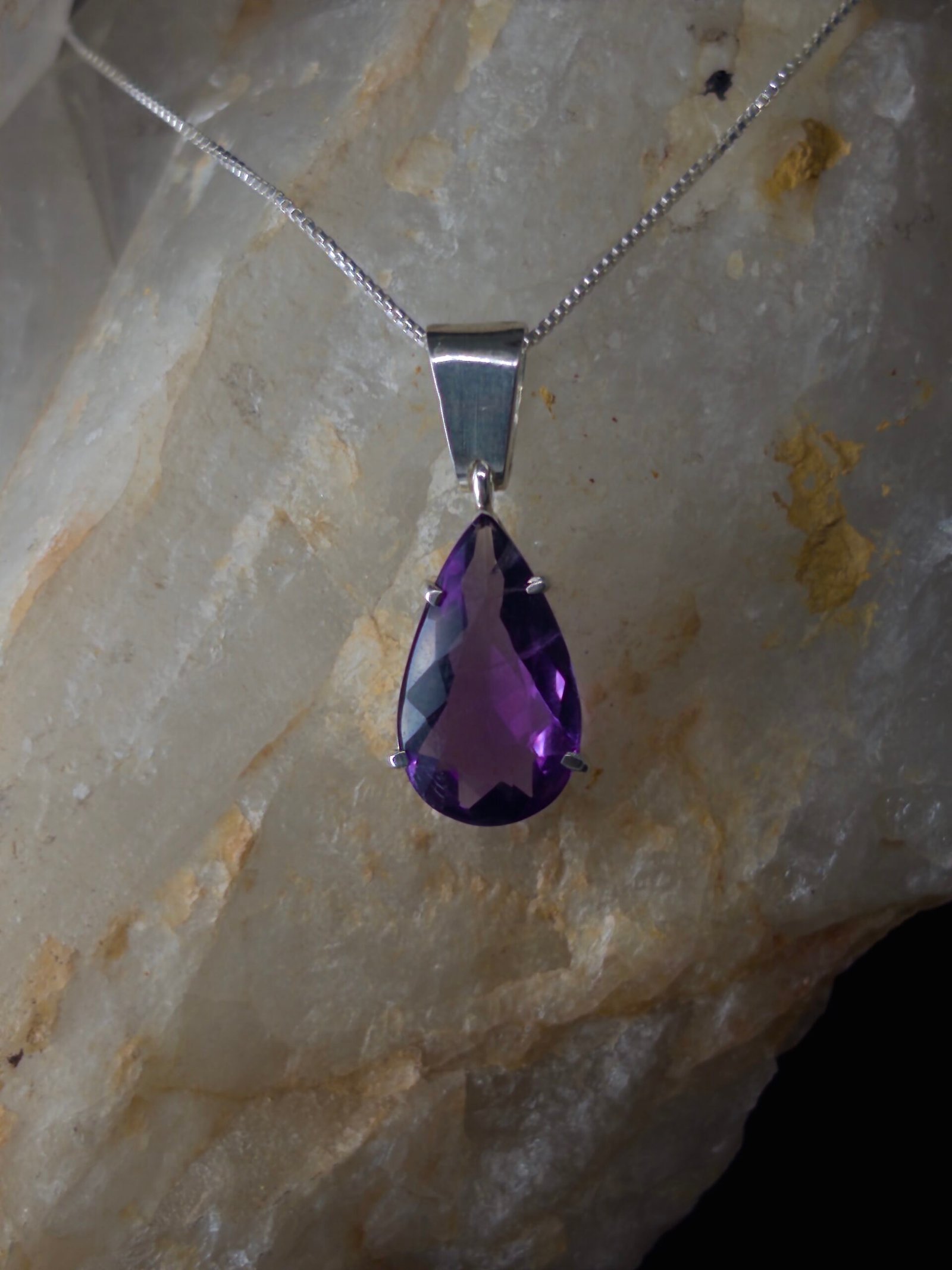 •Colar Prata e Ametista Modelo Gota -Material: Prata 925 e Ametista Natural; -Dimensões aproximadas: 2cmx1cmx1cm é corrente prata925 veneziana de 45cm. -Numeração: Fabricamos em qualquer númeração, especificar no ato da compra. -Gramatura aproximada: 2.8 •Pagamento: -Aceitamos pagamento parcelado até em 10x sem juros, em todos os cratões de débito e pix. •Fábrica: -A M.Adriane tem fabricação em Goiânia-Goiás e duas joalherias, uma junto á fábrica na rua 250, número 58 setor Coimbra e uma no Araguaia Shopping. Fábricamos qualquer peça em Prata ou Ouro sob encomenda pelo instagram ou whatzapp +55 (62)98147-4759 •Garantia: -Todas as peças M.Adriane em Prata 925 e Ouro 18 possuem garantia vitlícia. Nosso contato para orçamentos no atacado ou dúvidas é o whatzapp +55(62)98147-4759