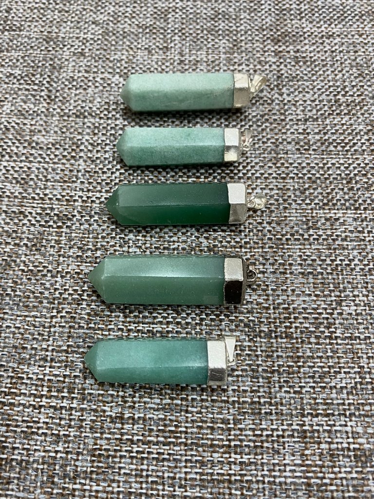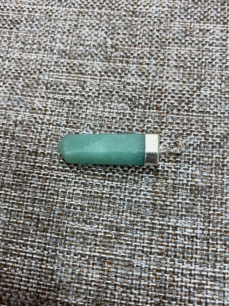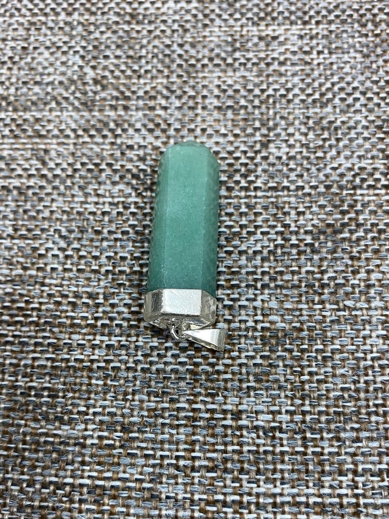 Pingente de semi-jóia e Quartzo Verde natural •Material: 60% de cobre, 35% de chumbo e outras ligas, com banho de Prata.